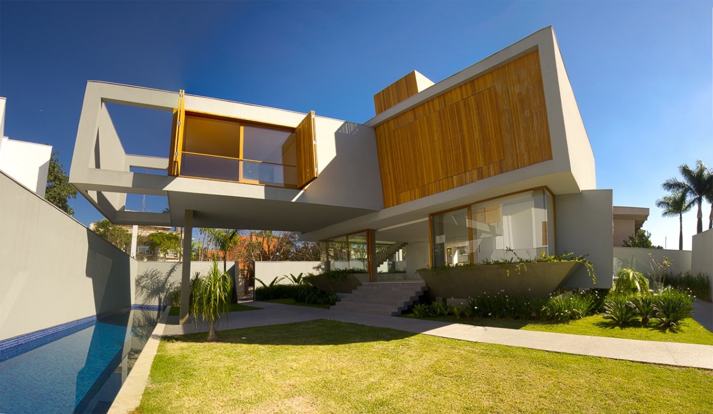 Nesta casa no Jardim Guedala em São Paulo, o arquiteto Gustavo Beber abusou do bom gosto em seus 750m2 em uma arquitetura contemporânea.